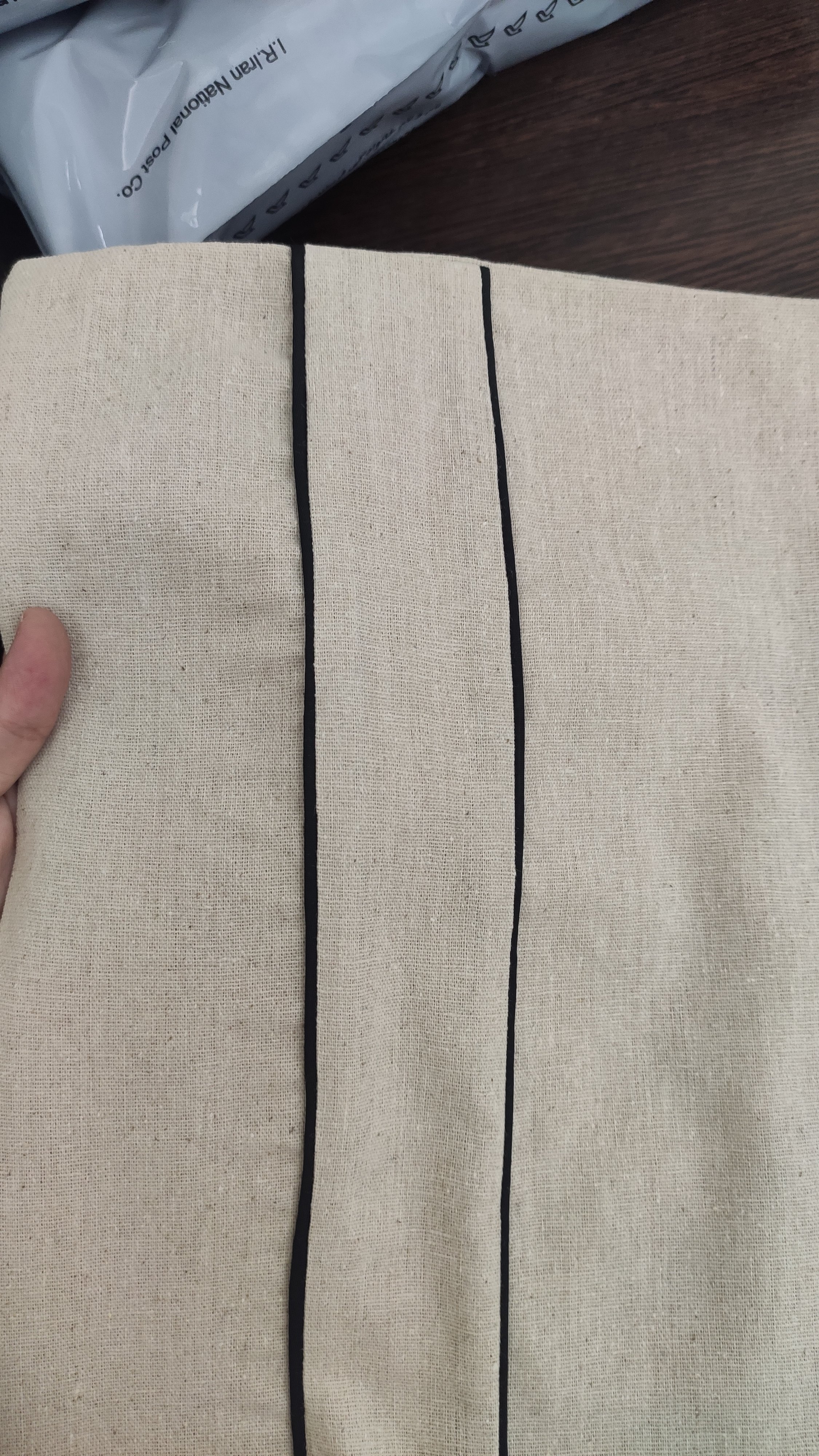 جنسلینن کرم نچرالدورویک طرف با مغزی دوزی مشکی و یک طرف لینن سادهرنگکرم نچرال خنثی + مغزی دوزی های مشکی
