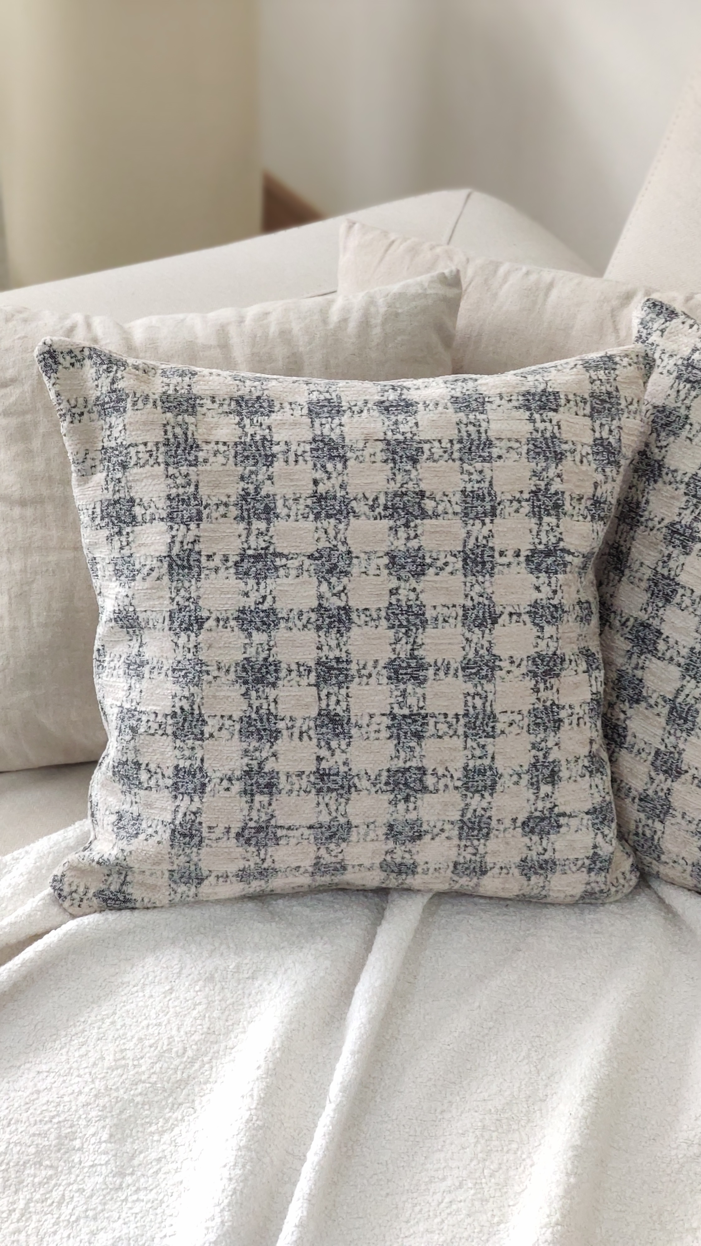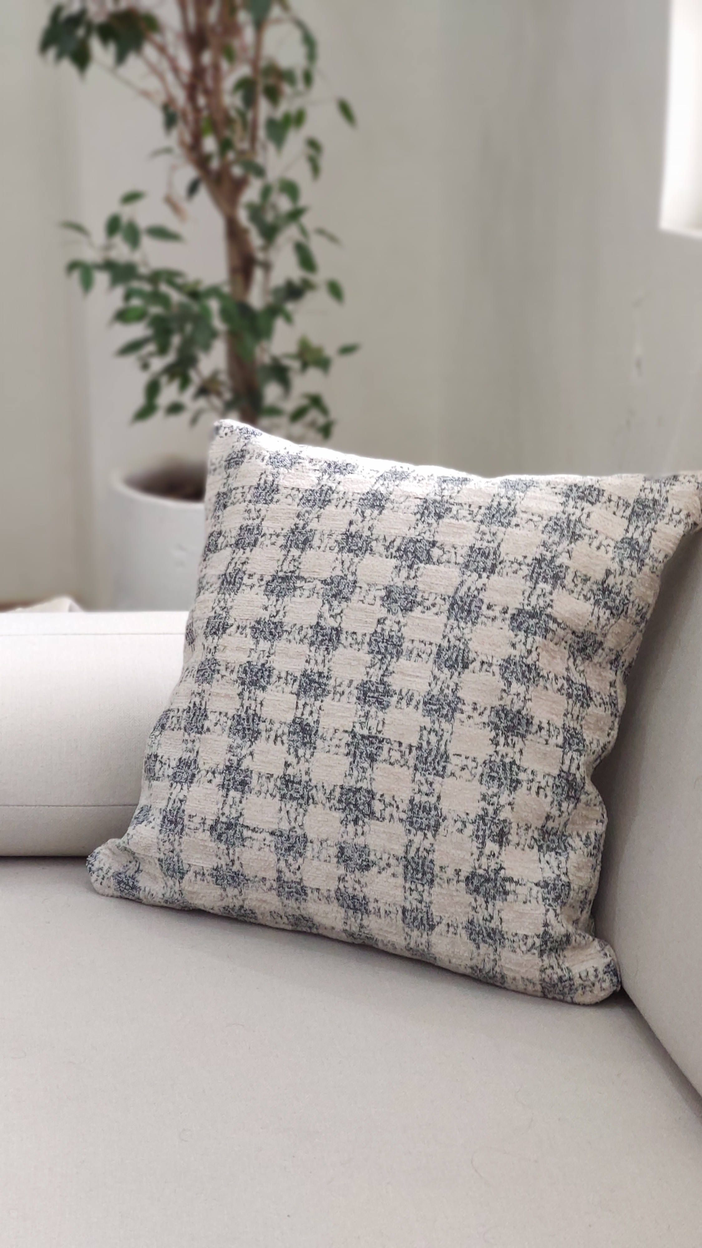 دستهبندی: کاور کوسنجنس: پارچه مبلی ضخیم و بادوام در عین حال لطیفدورو: دورو با زیپ مخفیرنگ: زمینه کرم روشن خطوط چهارخانه طوسی